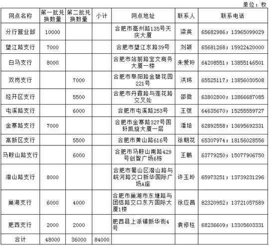 民生銀行合肥市區及縣域支行抗戰幣發行實際兌換數量